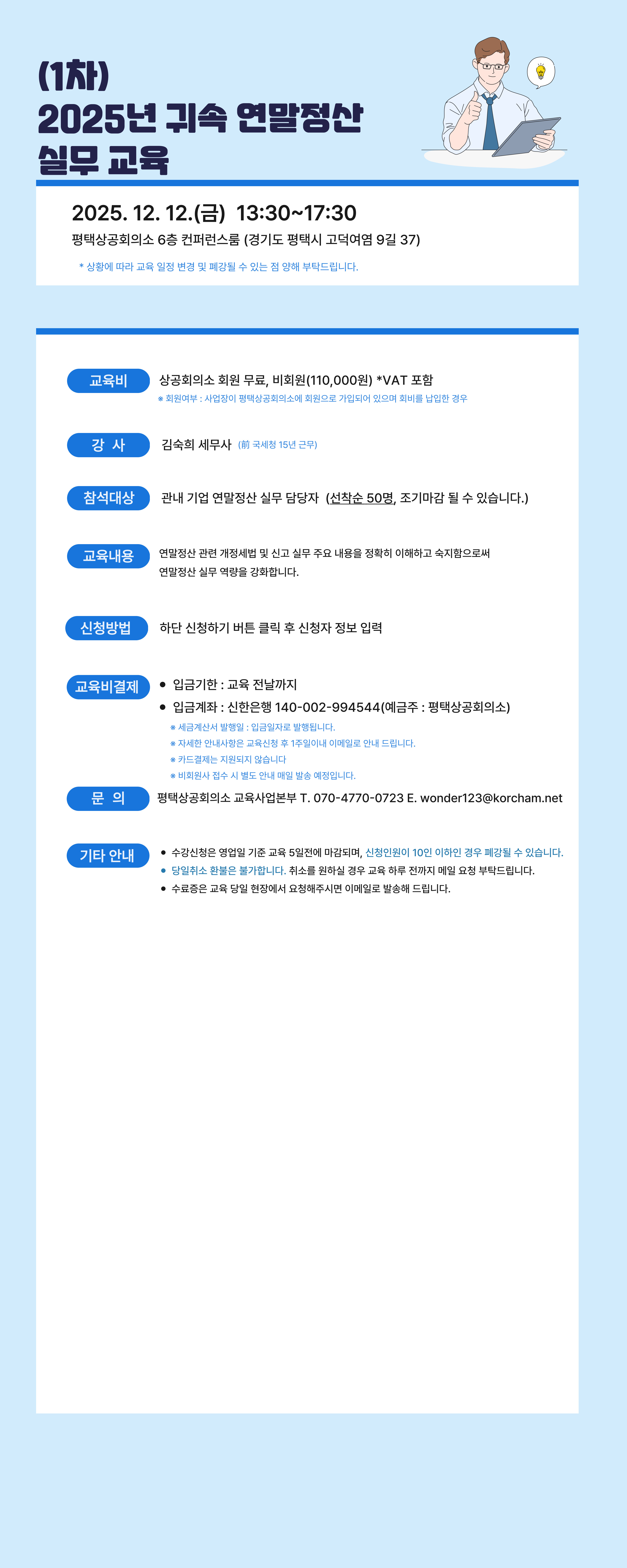 | ‒ | (1차) 2025년 귀속 연말정산 실무 교육(김숙희 세무사) |