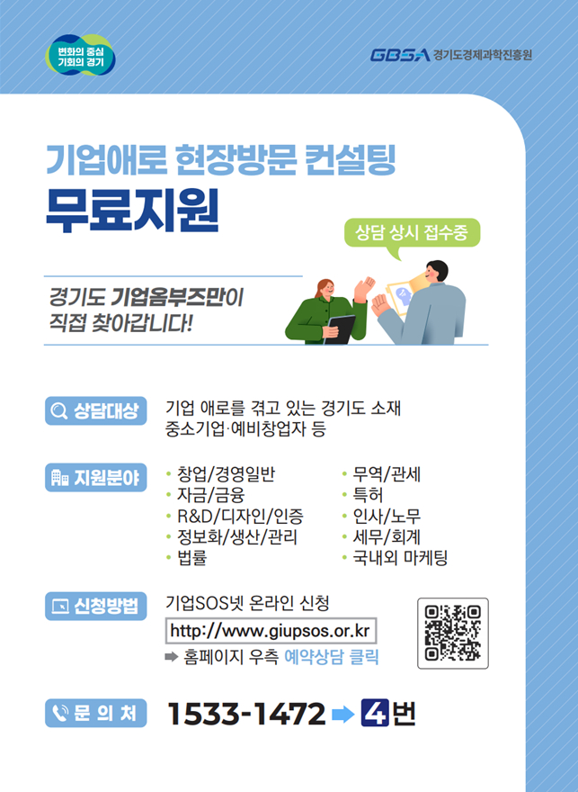 경기도에서는 도 내 기업이 겪는 애로사항을 효과적으로 해결 지원하기 위한 민간전문가 연계 컨설팅 지원 사업인 「기업옴부즈만 구성 및 운영」 사업을 추진하고 있습니다.