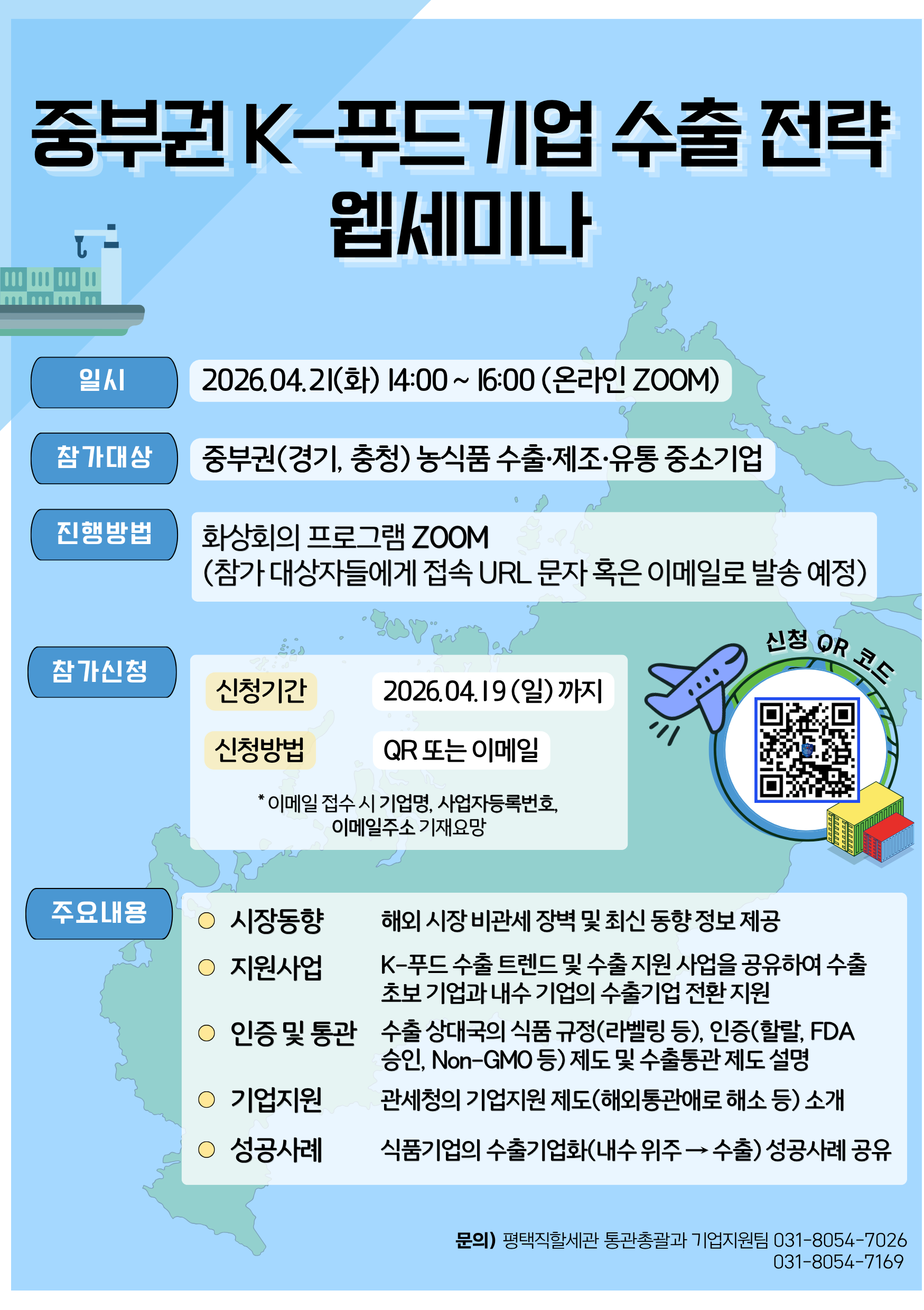| 제목 | 평택직할세관 중부권 K-푸드기업 수출 전략 웹세미나(4/21) | ||