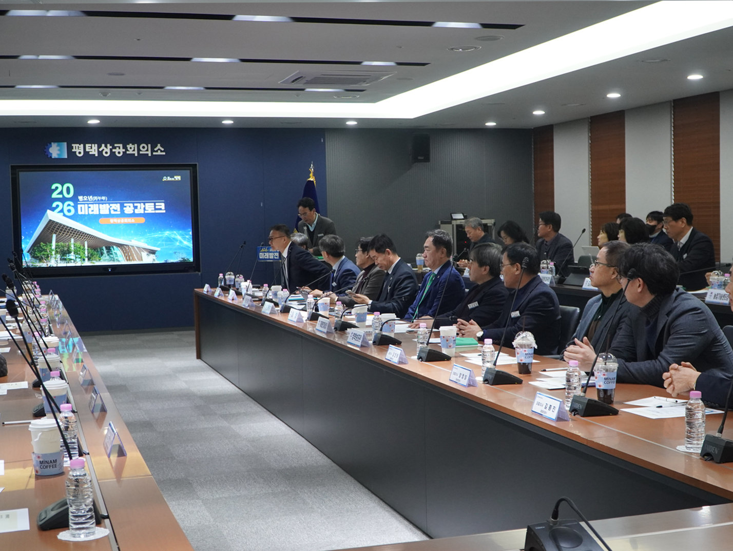 정장선 평택시장은 평택시의 주요 시정 비전과 정책 방향을 설명하며 평택의 미래 발전 전략과 산업 정책에 대해 공유했으며, 이어 진행된 자유 토론에서는 기업 경영 현장에서 느끼는 다양한 애로사항과 지역 경제 발전을 위한 의견들이 활발히 논의되었다.