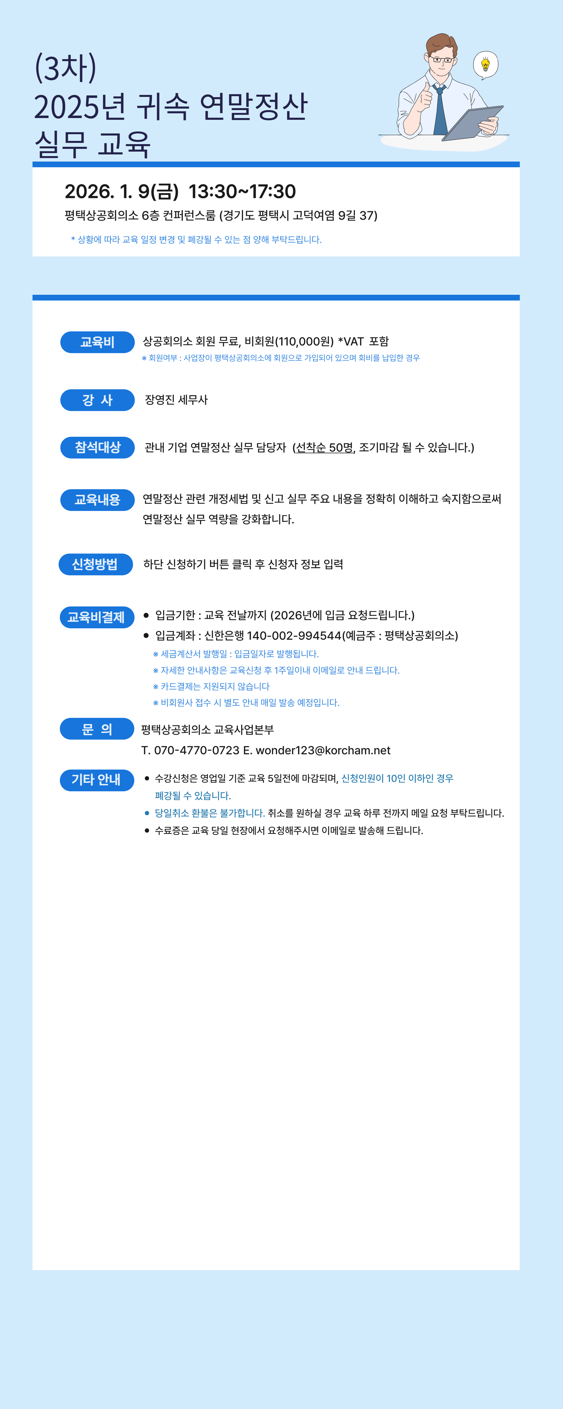 | ‒ | (3차) 2025년 귀속 연말정산 실무 교육(장영진 세무사) |